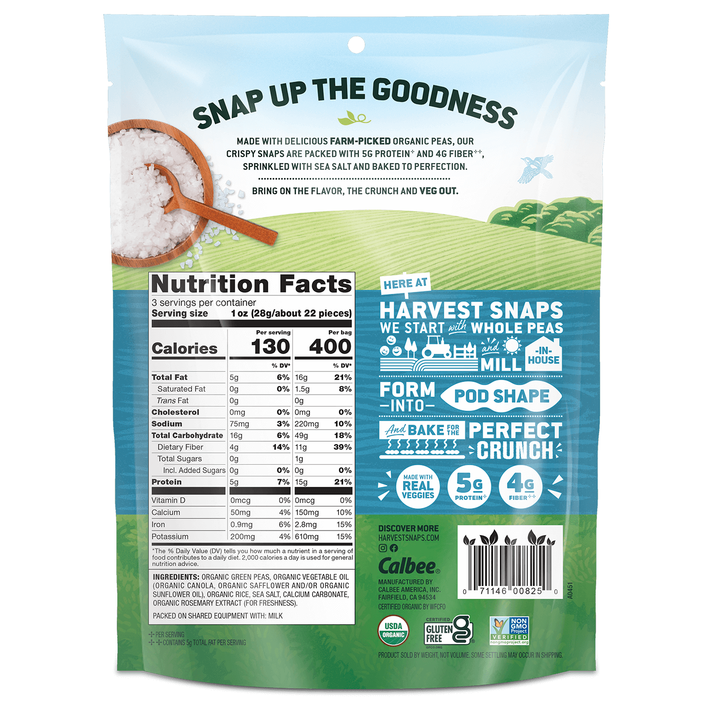 ORGANIC GREEN PEAS, ORGANIC VEGETABLE OIL (ORGANIC CANOLA, ORGANIC SAFFLOWER AND/OR ORGANIC SUNFLOWER OIL), ORGANIC RICE, SEA SALT, CALCIUM CARBONATE, ORGANIC ROSEMARY EXTRACT (FOR FRESHNESS).
